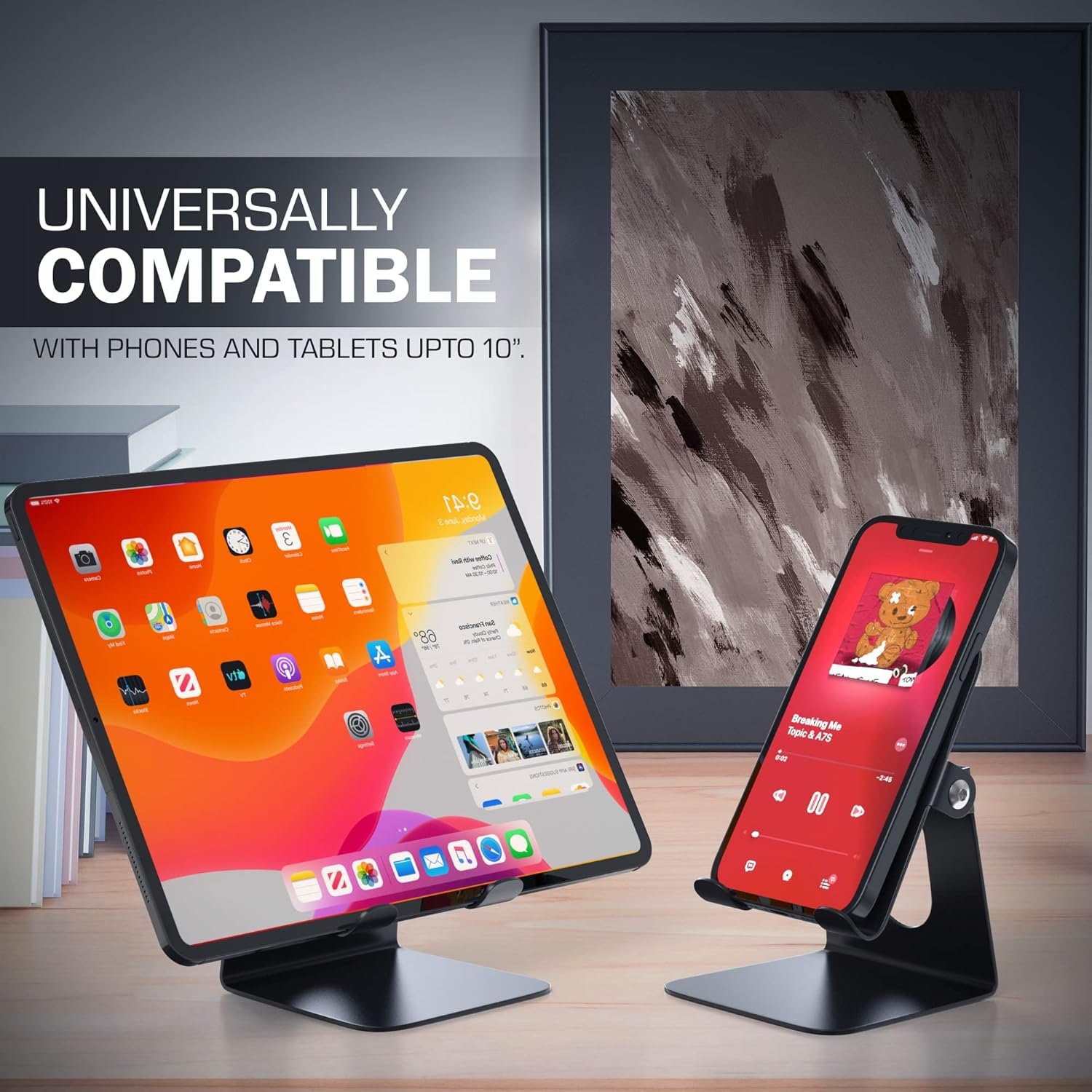 - There is no need for several stands thanks to our cleverly designed phone stand for tables, which easily supports iPads, tablets, and smartphones. designed to support any device’s weight.