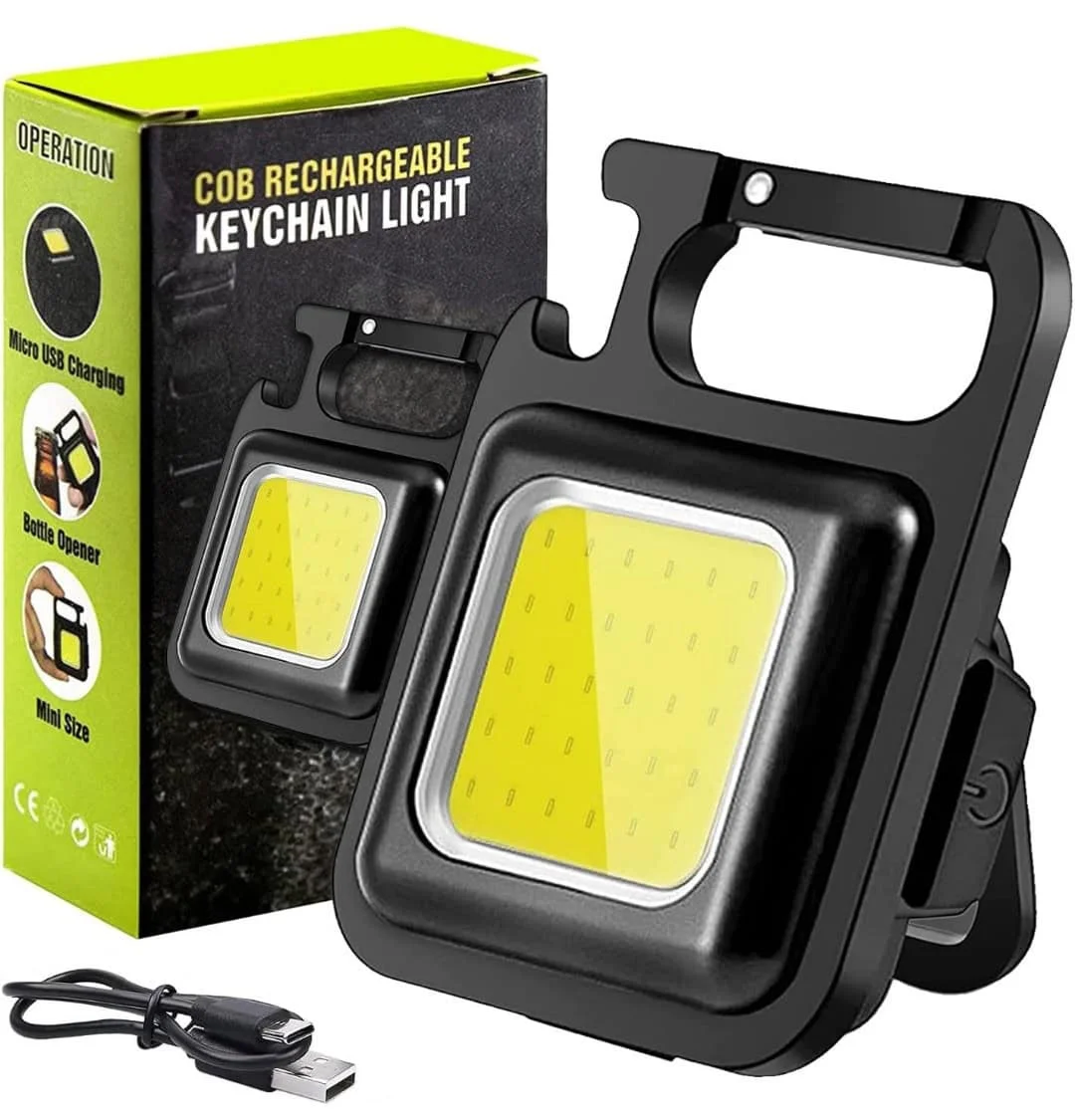 he Rechargeable Keychain Light is a compact yet powerful everyday essential, delivering up to 1000 lumens of bright, wide-angle illumination with 4 lighting modes for any situation. Built with durable aluminum alloy and polycarbonate, it’s waterproof, lightweight, and designed to last. Its multifunctional design includes a screwdriver, rope cutter, bottle opener, and corkscrew, making it more than just a flashlight. The magnetic base and 180° foldable handle allow for convenient hands-free use, while the 500mAh rechargeable battery with Type-C charging and power display ensures long-lasting performance. Perfect for camping, hiking, travel, car repairs, or emergencies, this portable mini torch keeps you prepared anytime, anywhere.